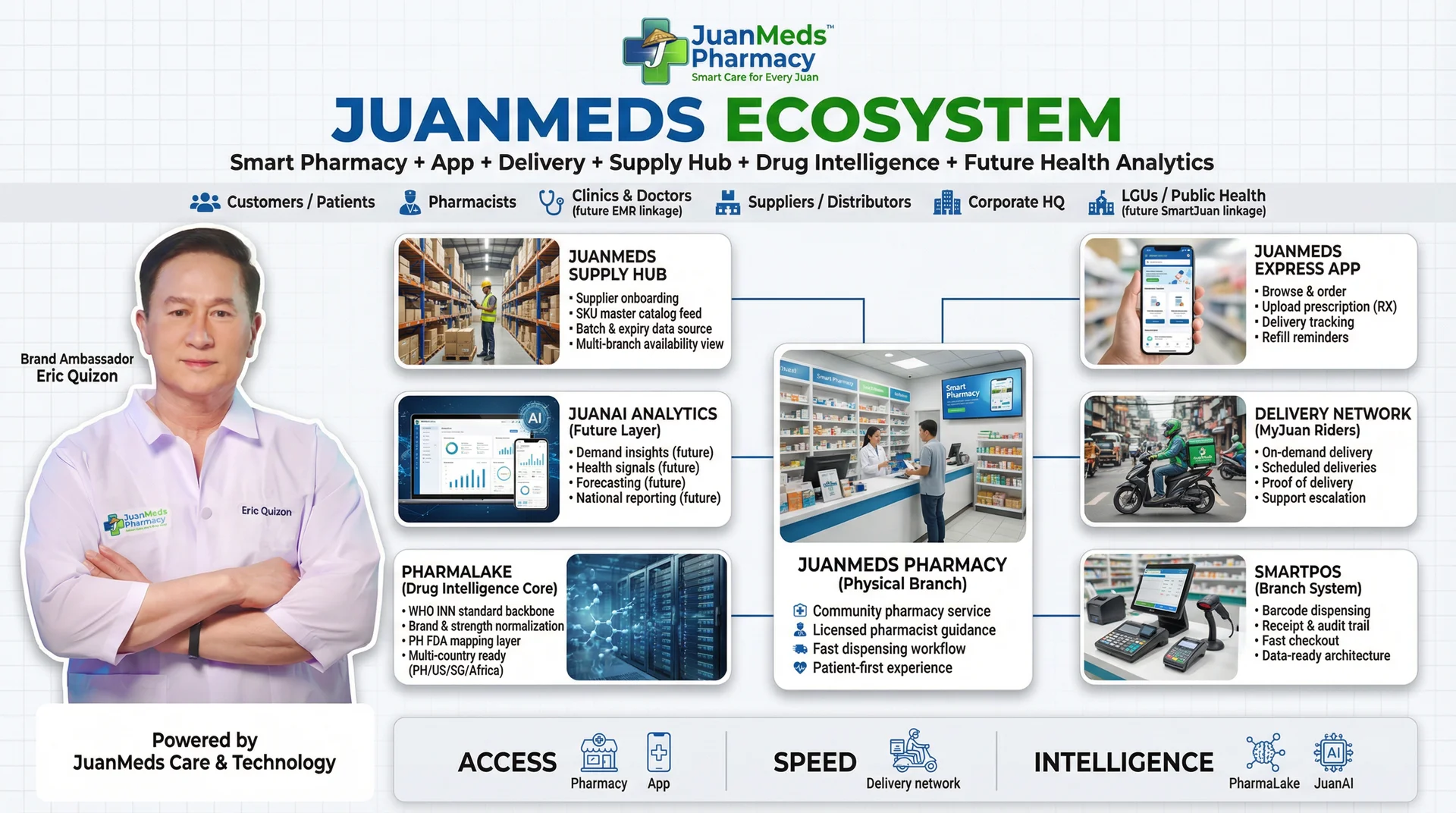 - JuanMeds Pharmacy serves as the physical retail foundation.